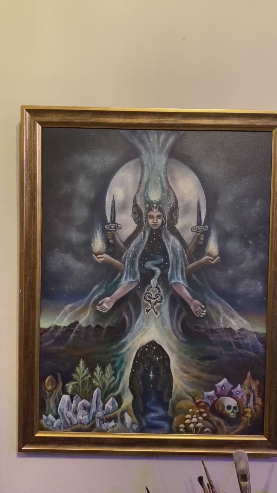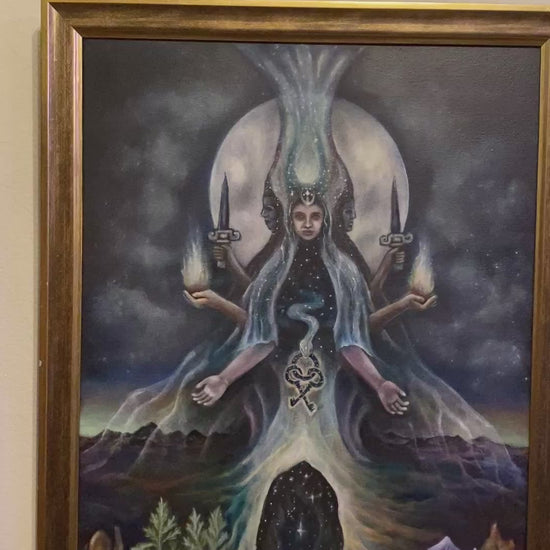 This is the ORIGINAL Hekate painting by Lesley Anne Burke, created in 2020-2021. I am letting go of this original piece which carries the energy signature of Hekate and is a deeply meaningful and powerful piece. Size is 21"x27" framed (18"x24" canvas)